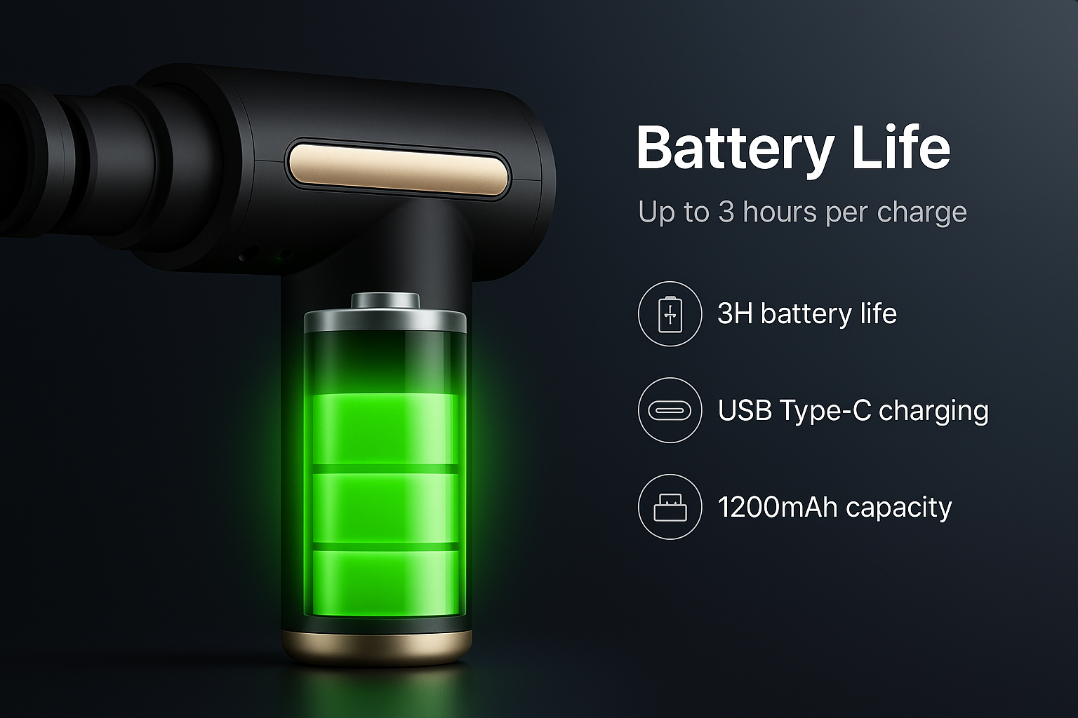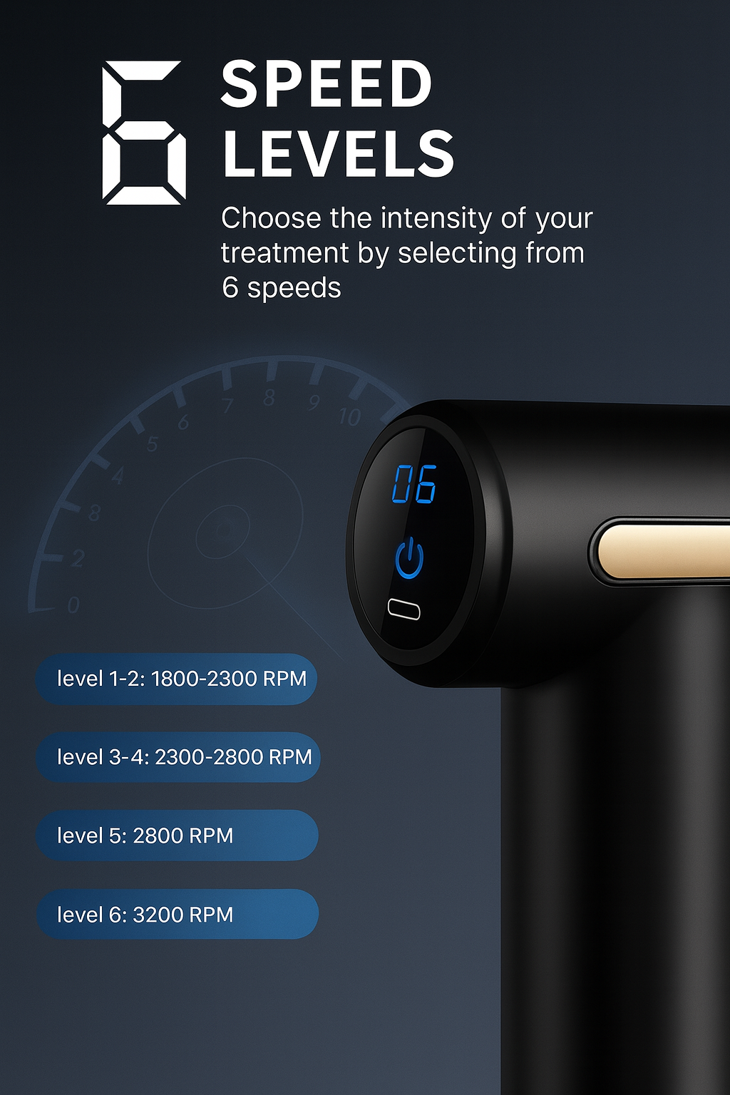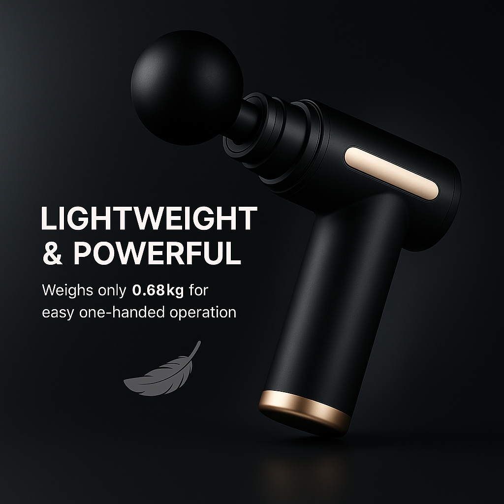 A compact and powerful massage gun designed to relieve muscle tension, improve recovery, and provide deep relaxation after workouts or a long day.